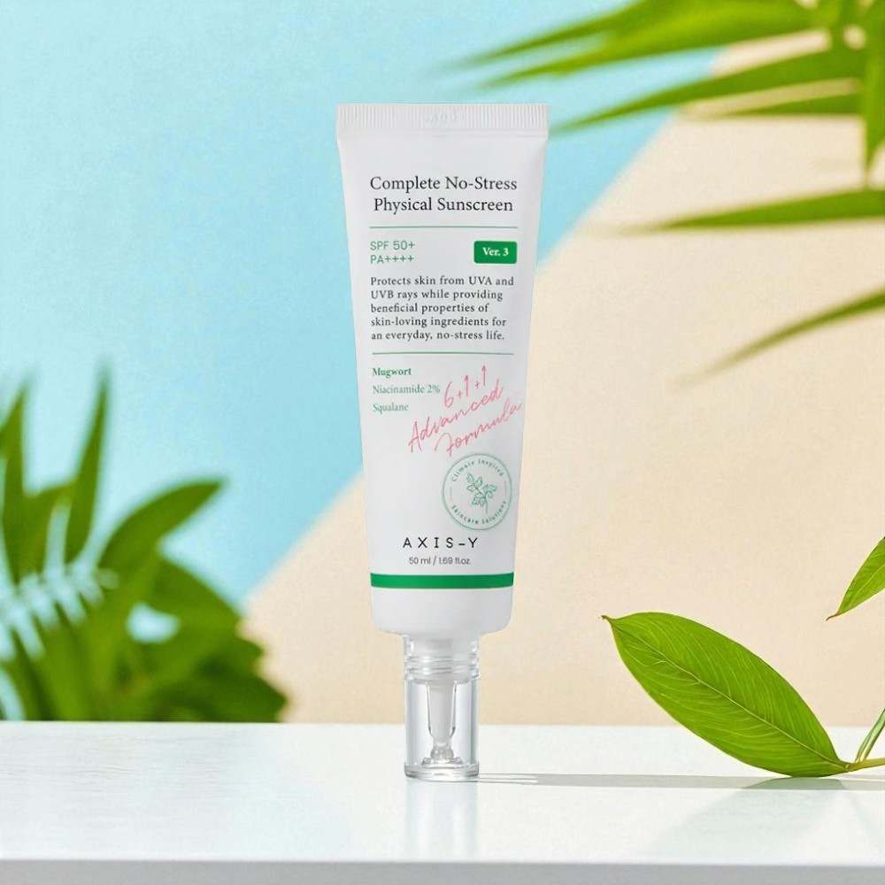- Physical sun protection: Physical sunscreens, like AXIS-Y Complete No-Stress Physical Sunscreen, use physical filters like titanium dioxide or zinc oxide to physically block the sun's harmful rays, rather than absorbing them like chemical sunscreens.